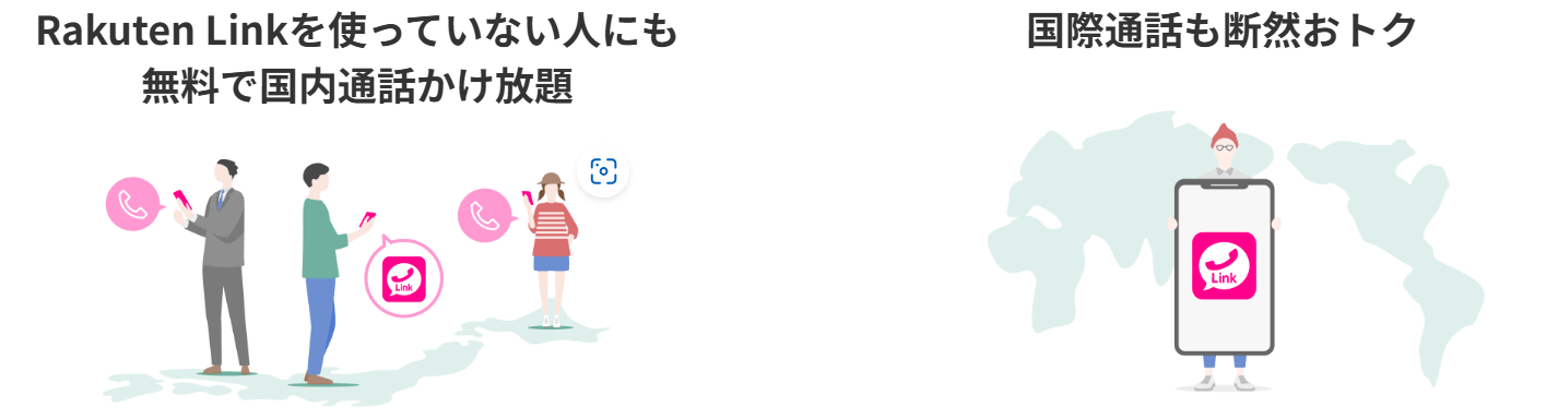 - 国内通話無料:専用アプリ「Rakuten Link」を使用すれば、国内通話が無料でかけ放題
