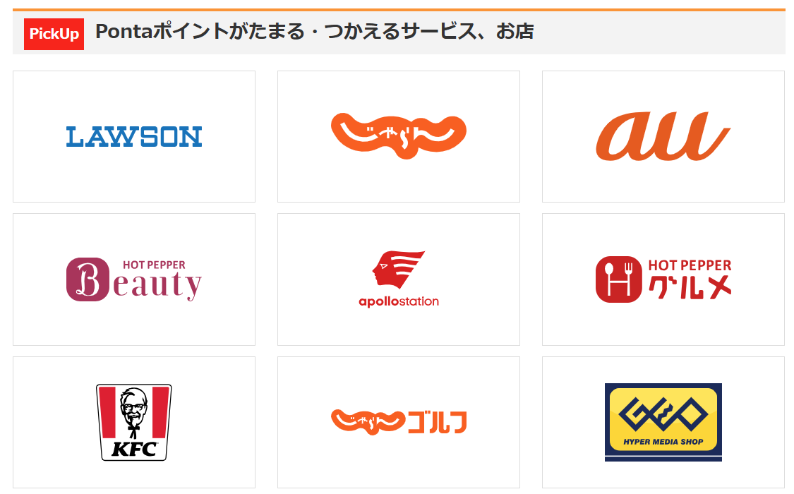 Pontaポイントは、ローソン、ケンタッキー、リクルート系(じゃらん、ホットペッパー)など、多くの提携先で利用可能。特に、日常的に利用する店舗でポイントを貯めやすくなります。
