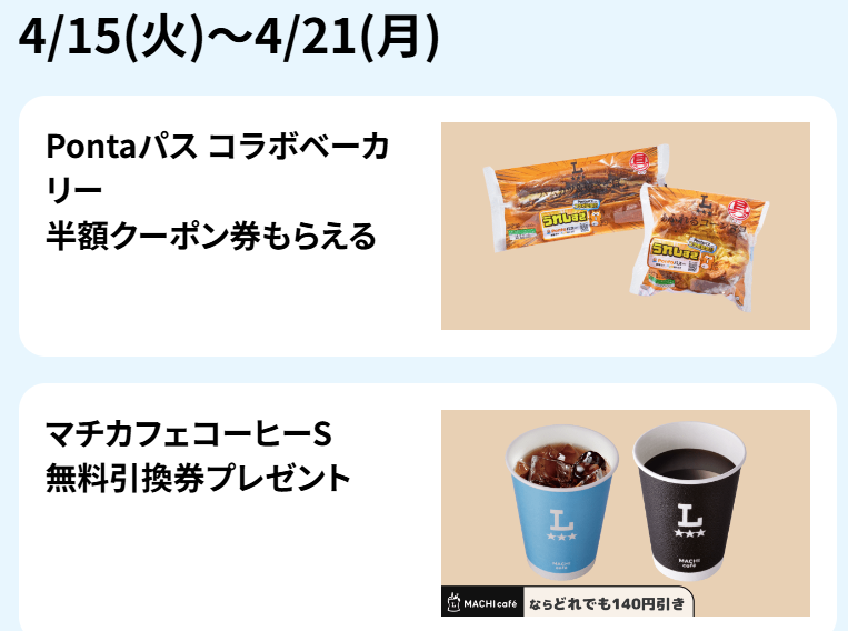 Pontaパスでは、定期的にクーポン配布があり、対象店舗での買い物がお得に。食事やショッピングで活用しやすいのが特徴です。