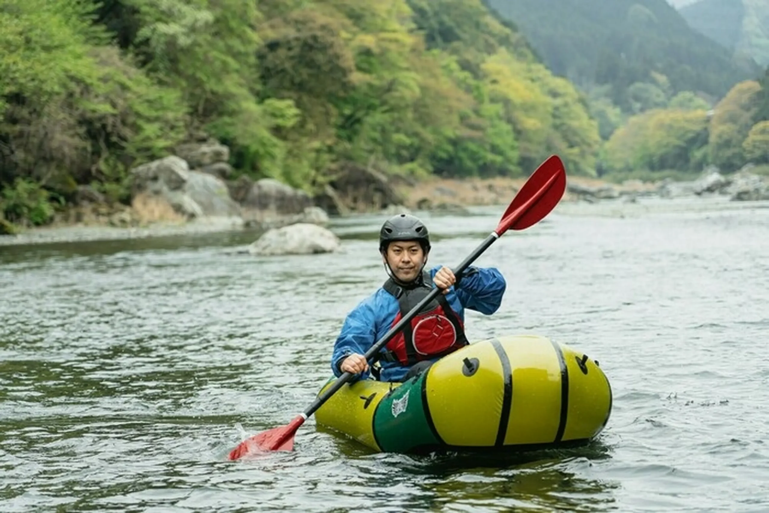 - 特徴:1人用の小型ゴムボート「パックラフト」で川を下る新感覚アクティビティ。初心者でもインストラクターが安全にサポートしてくれるので安心。